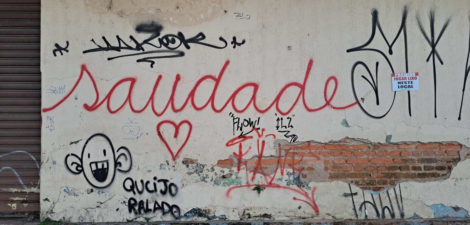 E ninguém nunca se cansa, ainda que tudo permaneça igual, é sempre uma surpresa quando a gente vira uma esquina e encontra um lugar novo – é a mesma coisa com aquelas pichações da palavra que só existe na língua portuguesa, e acho que só faz sentido mesmo para quem mora aqui no Brasil…