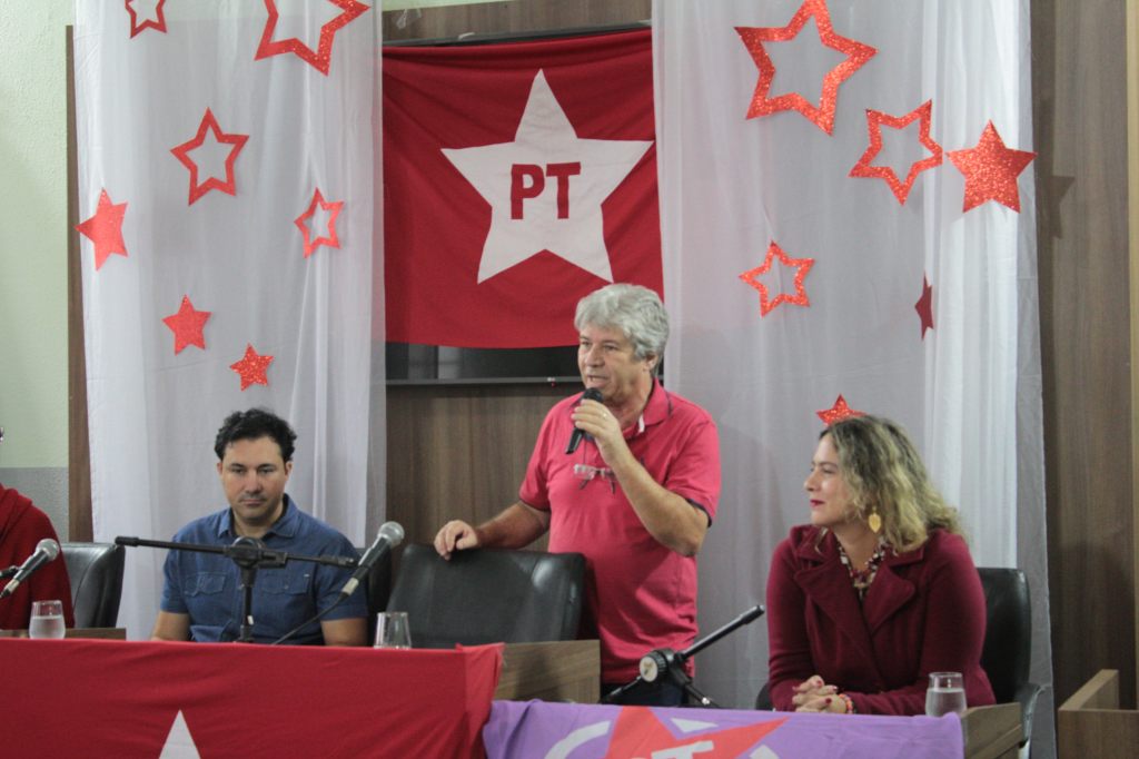 No início da reunião, o presidente do diretório municipal do PT, José Raimundo Dias, confirmou a pré-candidatura de Lívia (Foto: Geovane Carvalho e Lucas Reis)