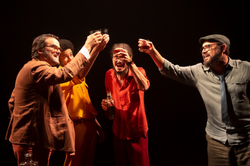Nesse mergulho na vida de Aldir, o que não faltam são referências presentes no espetáculo. O título é um trecho retirado da música “O bêbado e a equilibrista” e os nomes dos personagens foram escolhidos em homenagem a amigos do compositor: Bosco, que vem do João Bosco, Cristóvão, do Cristóvão Bastos, Carlinhos, do Carlos Lyra e Moacyr, que vem do Moacyr Luz.