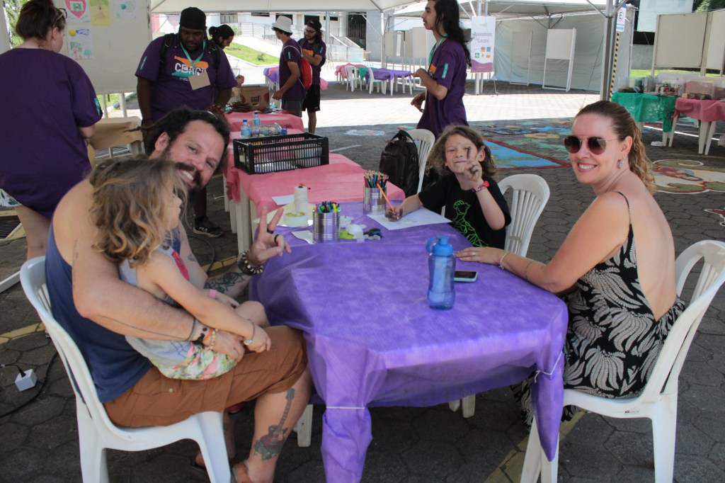 Algumas famílias apareceram no evento para levar os filhos para participarem das oficinas e acabaram se envolvendo no processo também. A aprendizagem criativa engloba várias etapas de assimilação cognitiva que acabam por provocar interesse em crianças e adultos, gerando assim uma atividade que incentiva a participação dos pais no processo de educação dos filhos.