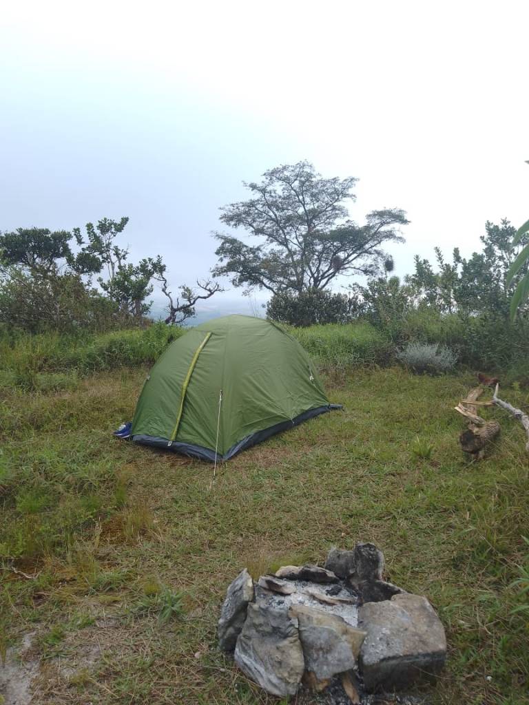 O lugar é plano, com espaço de sobra para inúmeras barracas. Para a esquerda é a trilha que desce a serra na direção de Tiradentes. Para a direita é a continuação da Trilha do Carteiro que leva até a Cachoeira do Gamelão e seus inúmeros poços ao longo das quedas. E seguindo em frente pela crista da serra seria meu destino para o dia seguinte.