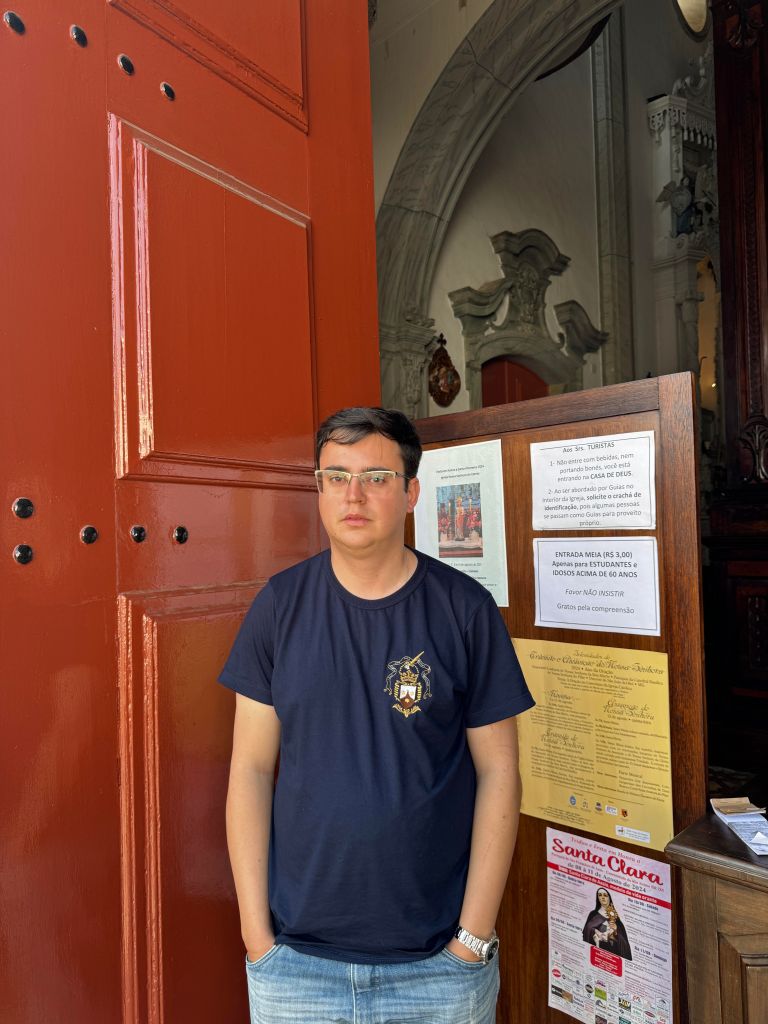 Com um jeito tímido de poucas palavras, mas muita atenção e dedicação. Ao chegar à igreja Nossa Senhora do Carmo, encontra-se Luiz Fernando de Resende, o sineiro da igreja e recepcionista do Museu dos Sinos.