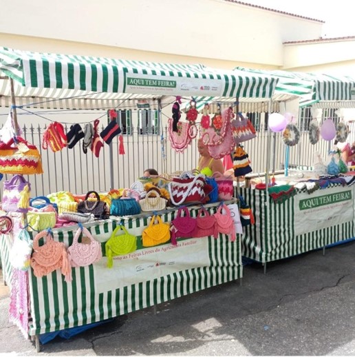 Conceição Mendes, de 65 anos, conta que já faz artesanato há muitos anos e participa da feira desde o início ainda quando Rodrigo era o organizador. Ela aprendeu artesanato desde os 9 anos, atualmente divulga alguns de seus trabalhos no Facebook.