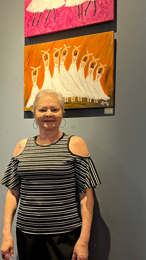 A reportagem encontrou com Gal, em dezembro, no Teatro Municipal de São João del-Rei, sede da oitava exposição dela. As obras foram encomendadas pelo Teatro e produzidas por ela: “eles falam que quando fecha o teatro, todinho, que não tem mais ninguém aqui, tem sempre uma bailarina dançando”, brinca.