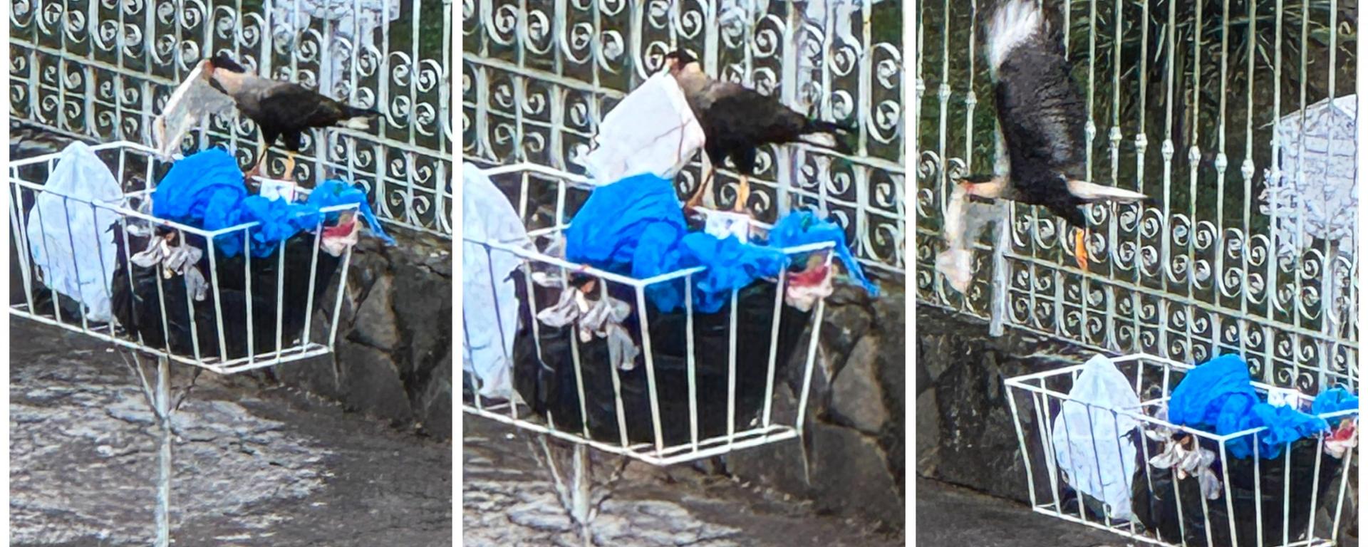 Ele estava lá, no meio do entulho de descartáveis. Um pássaro de porte mediano, bico longo, penas marcadas por tons que destoavam da paisagem. Mexia em sacolas amassadas, embalagens de supermercado e restos de comida. Era uma ave silvestre, bicho do mato, caçadora por natureza, transformada em catadora urbana.