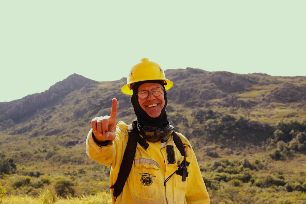 Hélio atua na serra há 13 anos. Estar na linha de frente no combate aos incêndios é um trabalho árduo e perigoso, mas ele considera prazeroso saber que está contribuindo para a conservação do local.