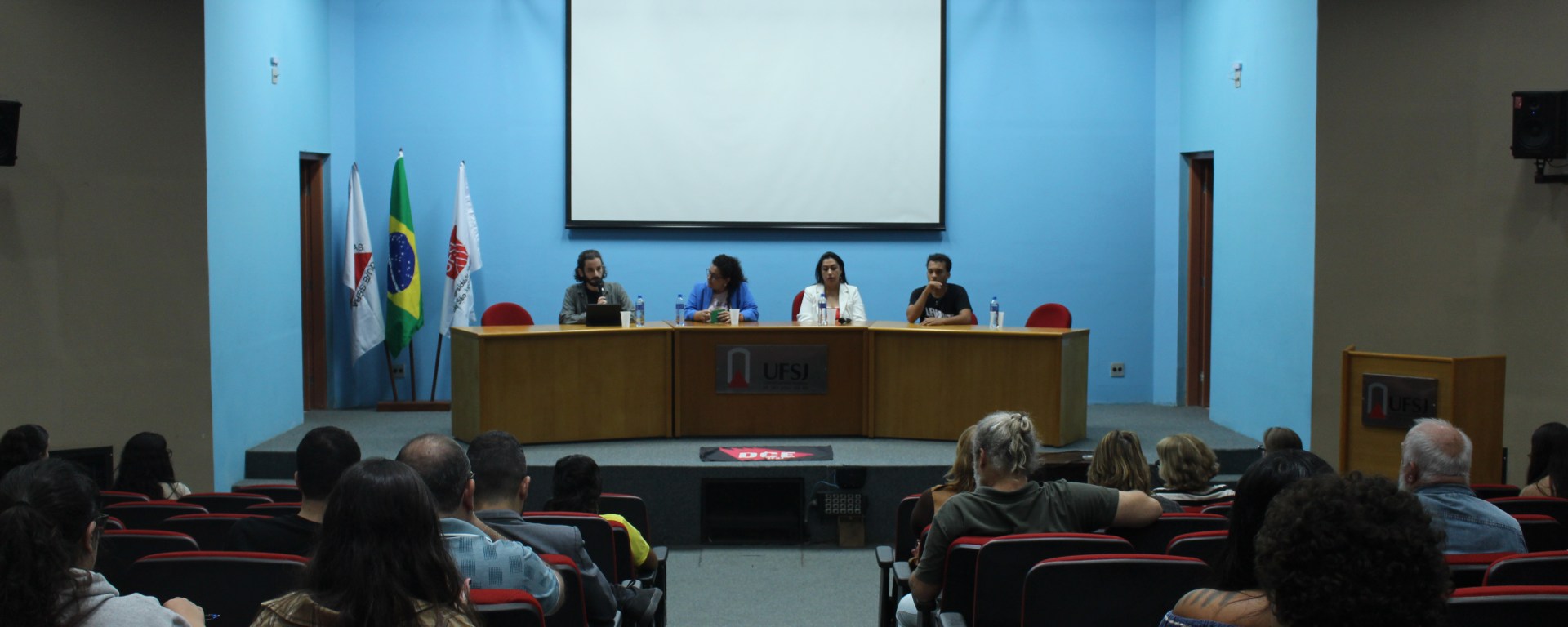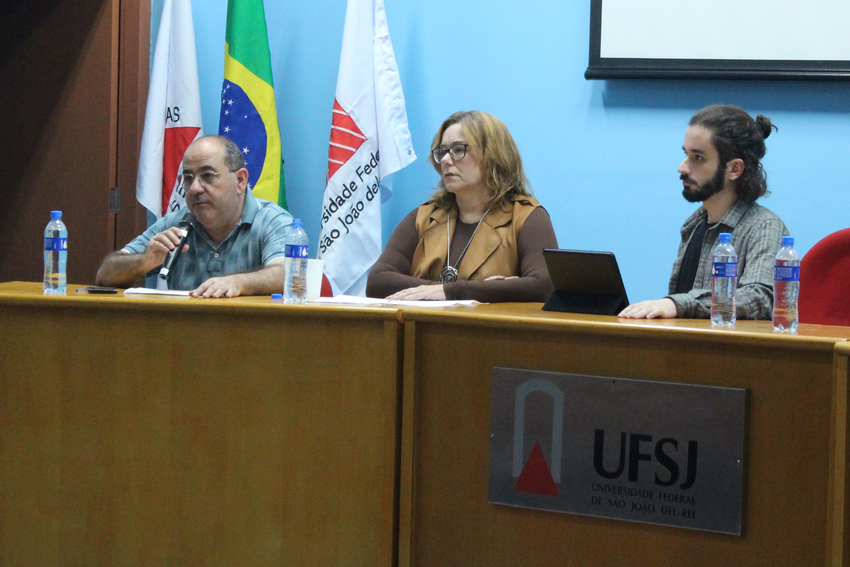 A mesa de abertura contou com a presença do coordenador-geral do projeto e docente titular do Departamento de Comunicação da UFSJ, professor Luiz Ademir de Oliveira, além do jornalista e estrategista em comunicação Arthur Raposo Gomes e da pró-reitora de Extensão e Cultura da UFSJ, professora Ana Cristina Faria.